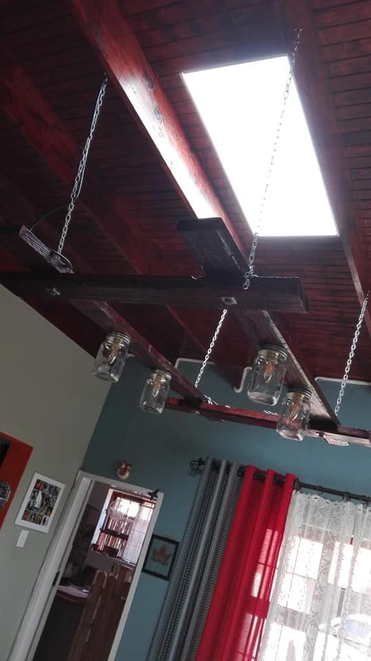 Custom built skylight and light fixture below.